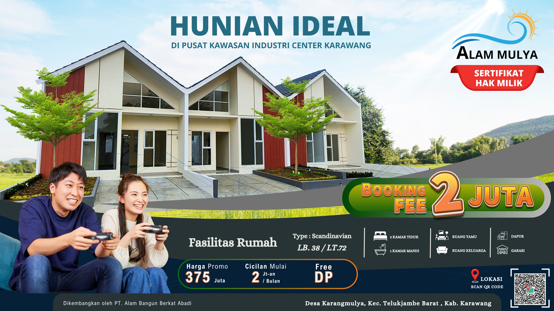 Perumahan Alam Mulya Karawang hadir sebagai solusi hunian ideal untuk keluarga dan karyawan industri. Terletak di Telukjambe Barat, Karawang, kami menawarkan rumah berkualitas, lokasi premium, dan cicilan ringan yang ramah di kantong.